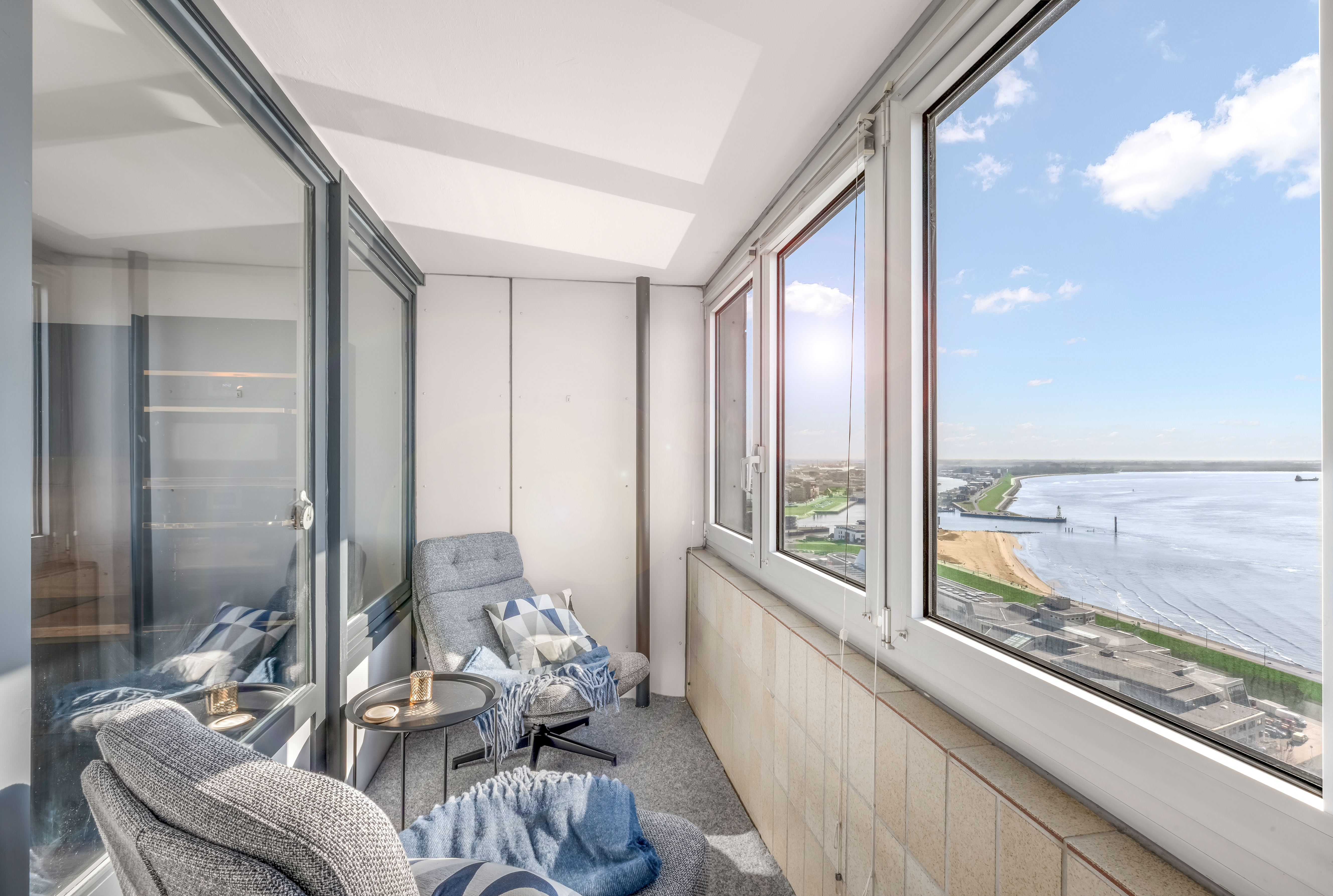 Erleben Sie den besten Panoramablick Bremerhavens. Das Sunrise Apartment befindet sich im 24. Stock und ist ideal für Familien oder Paare, die Wert auf Design, Komfort und eine einmalige Aussicht legen.